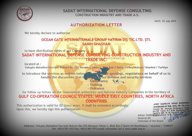 “Ocean Gate International” which operates in various sectors and countries, will provide possibilities to closely follow tenders and business opportunities to SADAT A.Ş.