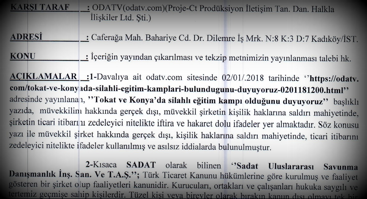 A denial request was sent against the slander that published on Oda TV on January 2, 2018 regarding to training camps in Konya and Tokat.
