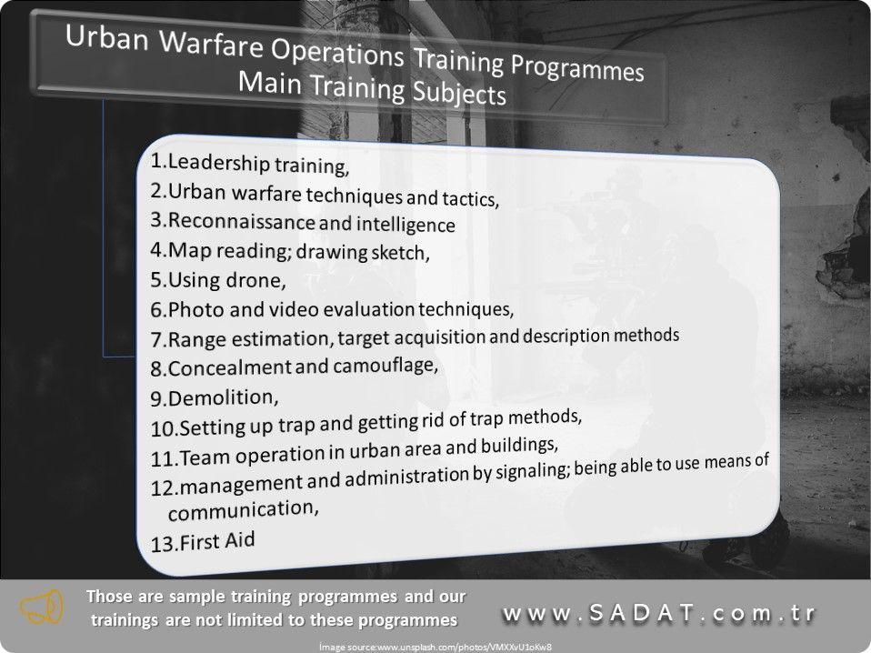 The trainees gain the following abilities as a result of the Urban Warfare Operations Training;