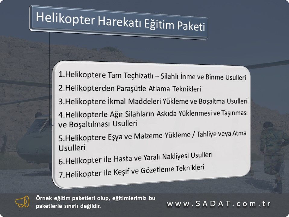 1. Les équipes / unités à transporter par hélicoptère doivent avoir suivi la formation militaire de base, l’instruction au combat individuel et les tirs de combat avec leurs armes individuelles, conformément aux exigences de leur spécialité et de leur branche
