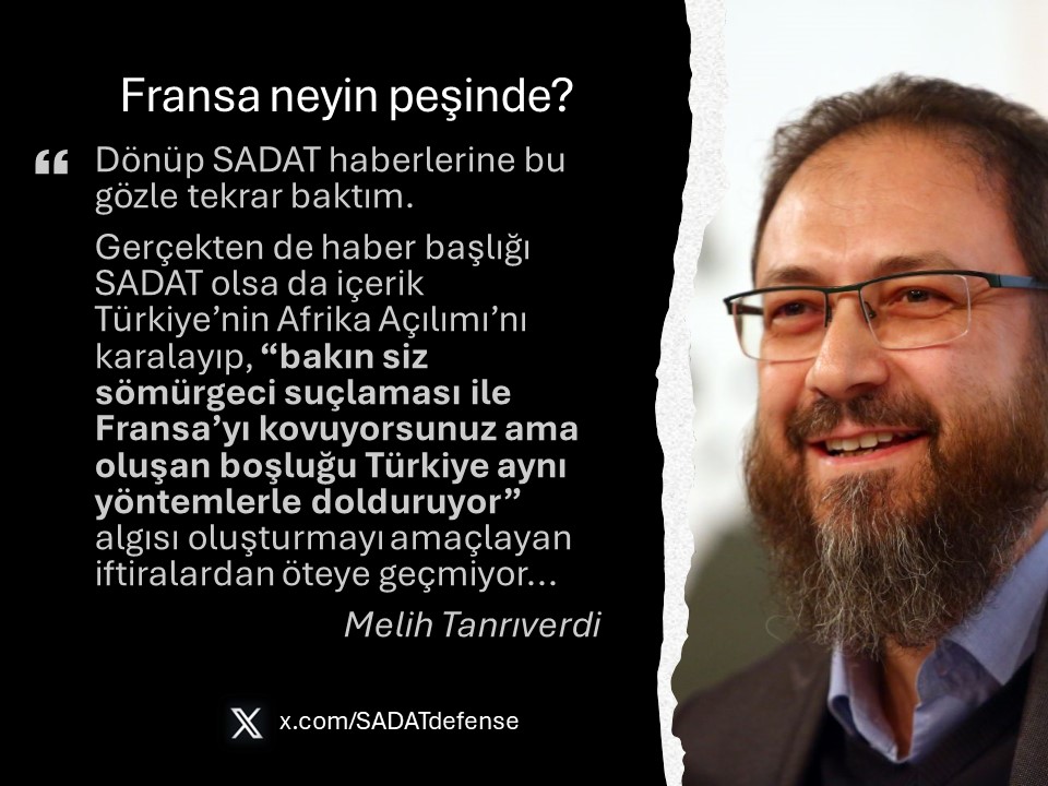 Dönüp SADAT haberlerine bu gözle tekrar baktım. Gerçekten de haber başlığı SADAT olsa da içerik Türkiye’nin Afrika Açılımı’nı karalayıp, “bakın siz sömürgeci suçlaması ile Fransa’yı kovuyorsunuz ama oluşan boşluğu Türkiye aynı yöntemlerle dolduruyor” algısı oluşturmayı amaçlıyordu.